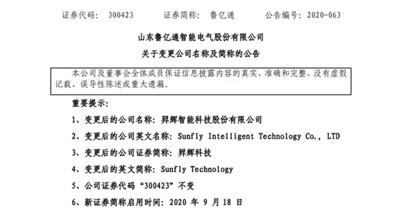 随着公司名称的变换,,,自2020年9月18日起,,,公司证券简称由“鲁亿通”变换为“55世纪科技”,,,公司证券代码稳固,,,仍为“300423”。。